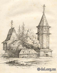 Это прежде всего раннее и очень редкое издание В. И. Даля Русскія сказки.-СПб.: В тип. Х. Гинца, 1836, приобретенное в московском букинистическом магазине в 1986 г. Это третья книга цикла „Были и небылицы Казака Владимира Луганского“ в 4-х книгах, 1833—1839 гг. К двум из четырех представленных в ней сказок художник-гравер А. П. Сапожников изготовил по одной иллюстрации. Сохранность гравюр, отпечатанных на плотной бумаге и вклеенных в текст, как и самой книги, удовлетворительна, может быть благодаря печати на титульном листе, текст которой гласит: „НА ДОМЪ НЕ ВЫДАВАТЬ“. Фронтисписом к первой сказке „ИЛЬЯ МУРОМЕЦЪ СКАЗКА РУСИ БОГАТЫРСКОЙ“ служит изображение церквушки, утопающей в старых, почти вровень с колокольней, деревьях.